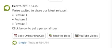 Centro Broadcasts help bridge that gap by allowing teams to coordinate communication directly where collaboration already happens — inside Slack — while maintaining visibility into engagement.